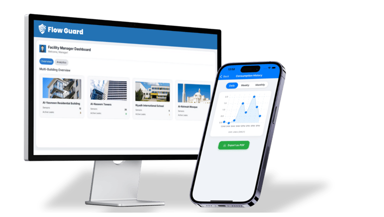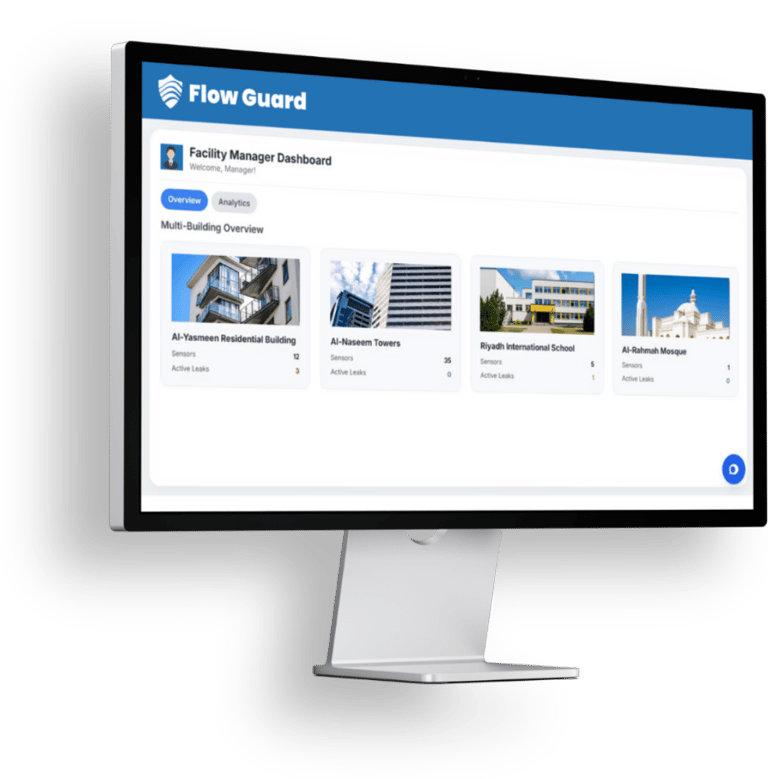 Flow Guard offers a scalable monitoring solution for compounds, apartment complexes, and staff housing communities. From a single dashboard, you can oversee real-time flow data, detect leaks across units, and act instantly without stepping on site. Our system brings automation, insight, and efficiency to multi-unit water management.